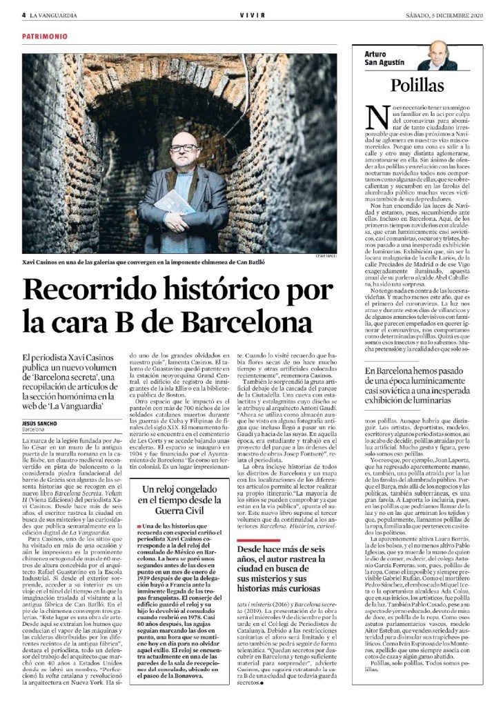 Os dejo la versión impresa de la entrevista que La Vanguardia publicó ayer sobre mi nuevo libro de la serie Barcelona Secreta. Además, con el honor de compartir página con el amigo y maestro Arturo San Agustín.