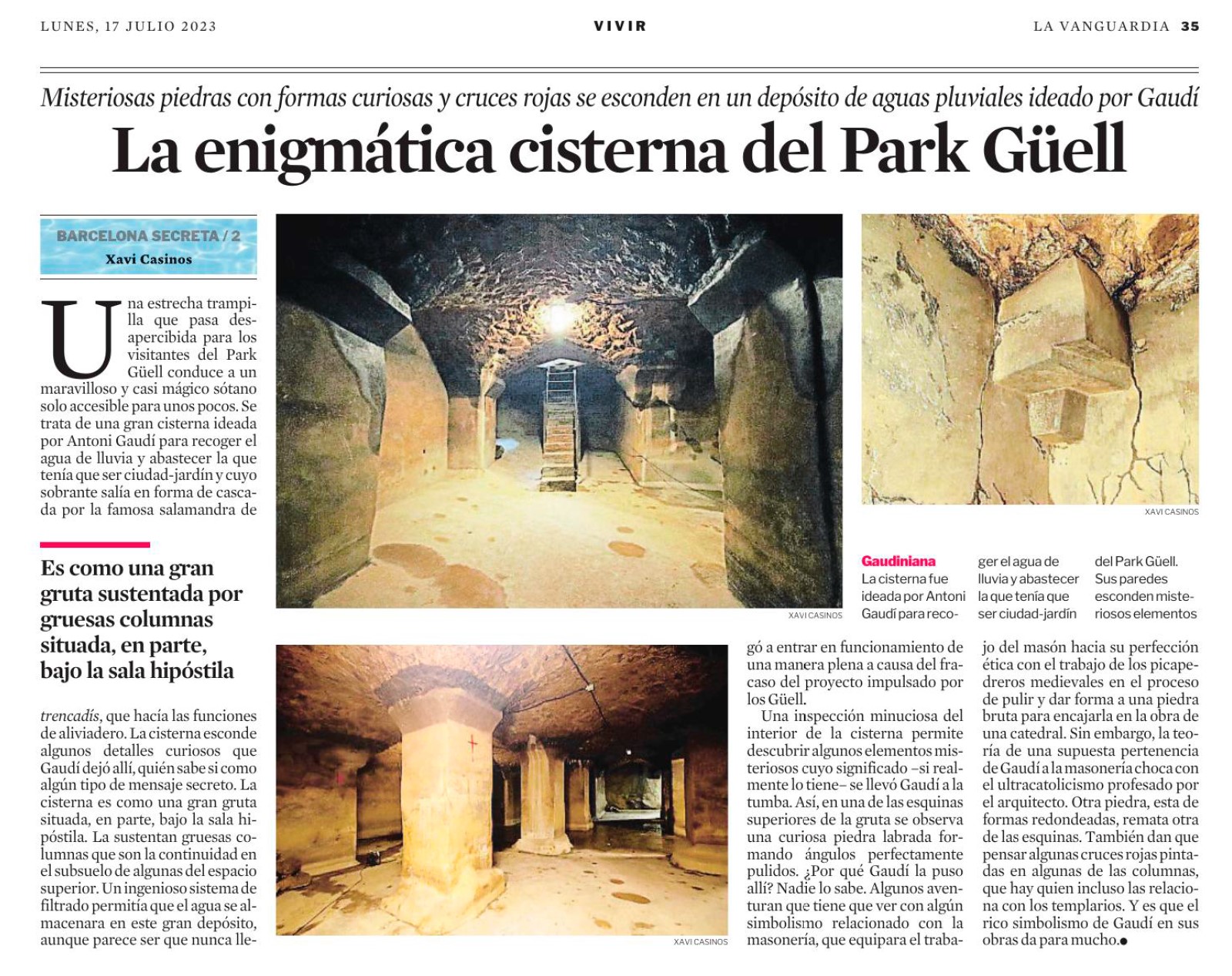 La misteriosa cisterna de Gaudí L’edició impresa de La Vanguardia va publicar ahir una entrega de la sèrie Barcelona Secreta dedicada a la cisterna que Gaudñi va dissenyar pel subsol del Park Güell. on ho ha deixar alguns enigmes. Compártelo: Haz clic para compartir en X (Se abre en una ventana nueva) X Haz clic para compartir en Facebook (Se abre en una ventana nueva) Facebook Haz clic para compartir en LinkedIn (Se abre en una ventana nueva) LinkedIn Me gusta Cargando... Relacionado