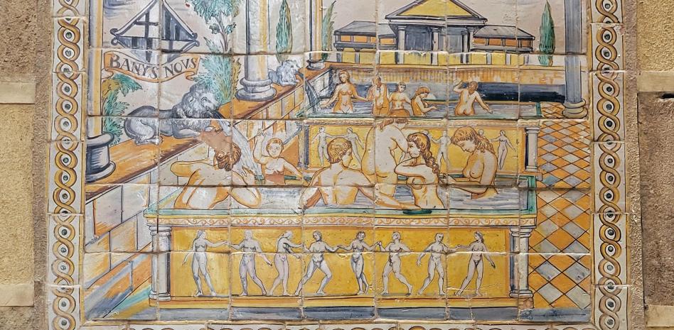 Una placa en la calle Banys Nous recuerda la existencia de unos baños públicos del siglo XII en la esquina con Boqueria. Sus restos fueron derribados definitivamente en 1834 y los mármoles fueron reutilizados en la iglesia de Betlem, en la esquina de la Rambla con Carme. Esta es la historia de hoy de mi serie Barcelona Secreta en Lavanguardia.com. Podéis leerlo en el siguiente enlace: